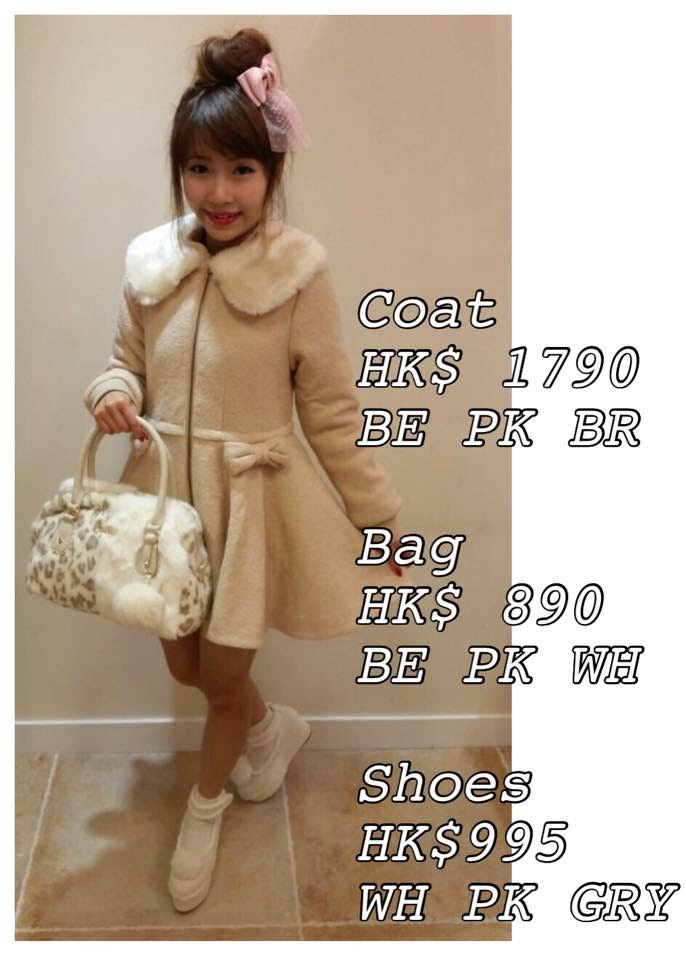 除外套仲有唔小嘅大褸款~ 趕得切喺星期五冬至前返到~ 天氣雖然開始涼~ 但仲有星期就到 Sogo Thankful~ 唔知有冇折呢~ 呢件毛毛領拉鏈雙蝴蝶結大褸好重身~ 拉鏈設計的確好方便, 但安坐就一定要拉開呢~ 今次所有粉紅色大褸都係 baby pink!!! 好想要一件呀!!!